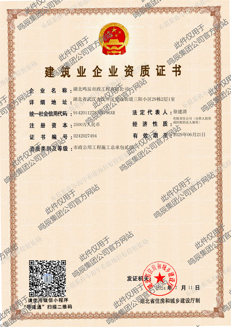 湖北鳴辰市政工程有限公司擁有齊全的市政施工機械設(shè)備,50余名中級以上職稱的施工技術(shù)人員,技術(shù)力量雄厚,能夠承接各種大中型道路和市政施工的施工任務(wù)?,F(xiàn)為武漢市市政協(xié)會會員,已通過ISO質(zhì)量、安全、環(huán)境管理體系認(rèn)證,先后獲得市先進(jìn)單位和守合同重信用企業(yè),年施工能力20000萬元,工程合格率100%,優(yōu)良率95%,為武漢市市政道路、排水、園林綠化、景觀工程、供熱、休閑等工程貢獻(xiàn)了力量,受到政府部門和業(yè)主單位的好評,業(yè)務(wù)主要承接范圍為城市道路(新建、改建)工程、給排水工程、橋梁工程、綠化景觀工程、公共廣場等工程。近年來公司承接的代表性工程項目主要有:漢口歷史風(fēng)貌區(qū)特色街巷建設(shè)項目青島路道路整治及花街建設(shè)工程、江岸區(qū)瑞祥路道路工程、三金潭立交東側(cè)公共通道(一期)道排工程、青菱西路(白沙三路-白沙五路)道路工程、園藝二路道路工程、2020年市級重點改造配套工程(武漢市青少年宮足球場建設(shè)項目)、隨州白云大道第五標(biāo)段、三金潭小路及二環(huán)線橋下節(jié)點周邊整治工程總承包、澳門金角片城市更新配套建設(shè)項目(一期)設(shè)計施工總承包等項目。