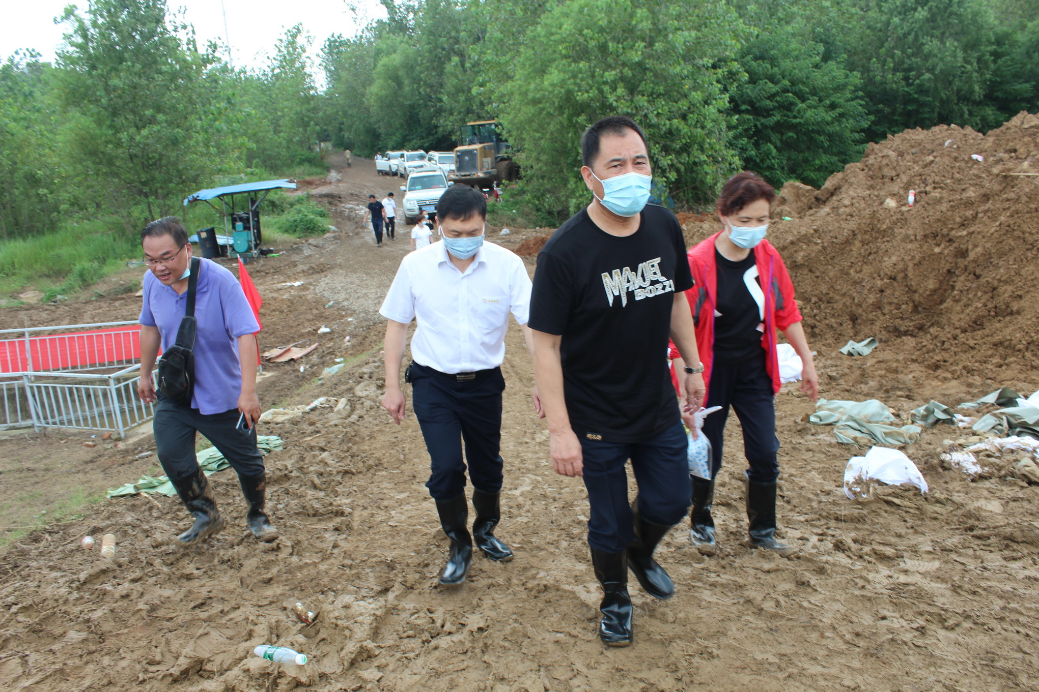 集團公司黨委副書記凃敏帶領(lǐng)集團機關(guān)黨員及志愿者負(fù)責(zé)本次防汛搶險的后勤工作。在11日接到上級部門通知后,集團公司黨委副書記凃敏和工會主席陳漢林連夜組織準(zhǔn)備防汛前線的勞保用品(雨鞋,雨衣,鐵鍬等)。在搶險現(xiàn)場,后勤保障小組來往十余趟為突擊隊員運送飲用水、食物和防汛物資。集團公司副總經(jīng)理徐建清、副總經(jīng)理殷武、工會主席陳漢林第一時間奔赴防汛現(xiàn)場指揮搶險突擊隊,安排部署防汛搶險工作。搶險隊員們積極響應(yīng),你裝我扛,任勞任怨。