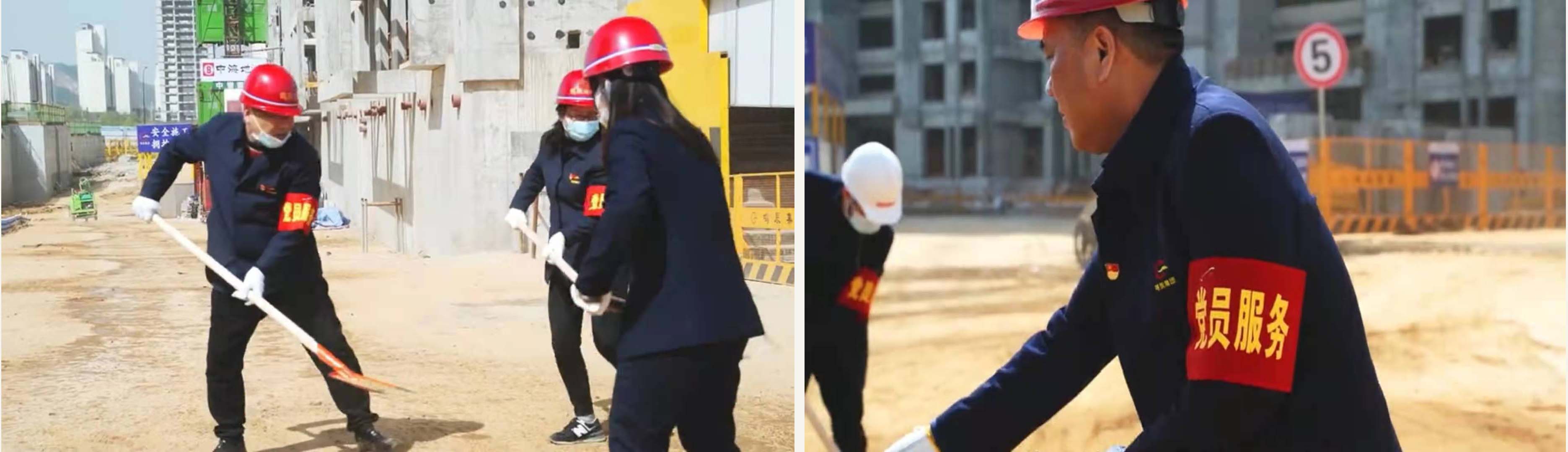 抵達(dá)工地現(xiàn)場(chǎng),支部書記鄺偉同志做簡(jiǎn)短動(dòng)員講話,即分組清掃區(qū)域,分發(fā)工具,拉開黨員活動(dòng)日的序幕。春風(fēng)徐徐,多日陰雨后的陽(yáng)光灑在每位黨員同志的身上,顯得大家的身影格外偉岸,清掃路面泥土、磚渣、積水、樓層雜物轉(zhuǎn)運(yùn),大家熱火朝天的場(chǎng)景映襯著集團(tuán)上下決心打造標(biāo)桿式裝配式項(xiàng)目的信心。
