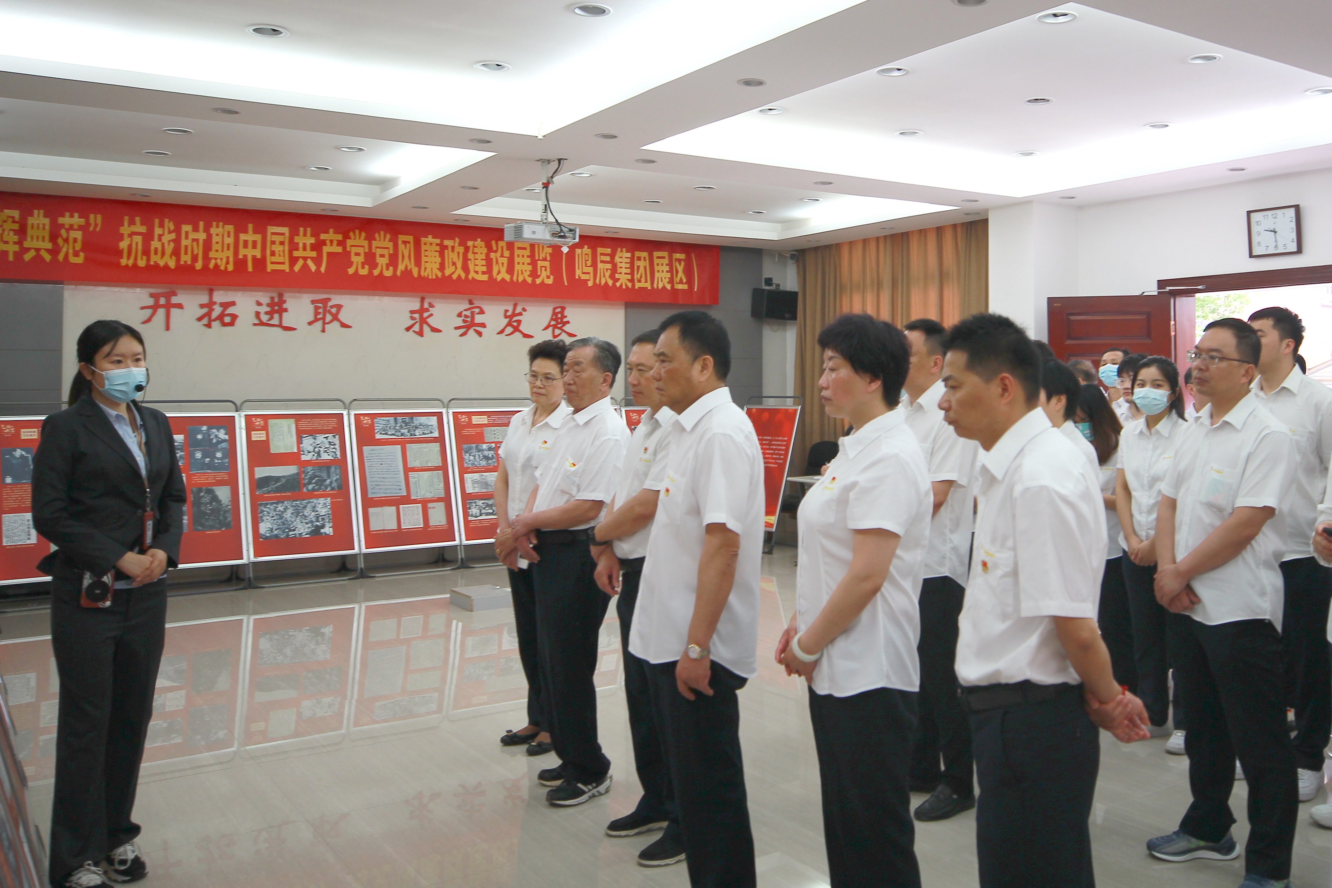 2023年5月16日上午,“光輝典范——抗戰(zhàn)時(shí)期的中國共產(chǎn)黨黨風(fēng)廉政建設(shè)”畫展在武漢鳴辰建設(shè)集團(tuán)有限公司展出。集團(tuán)公司機(jī)關(guān)全體黨員、全體員工觀看畫展。