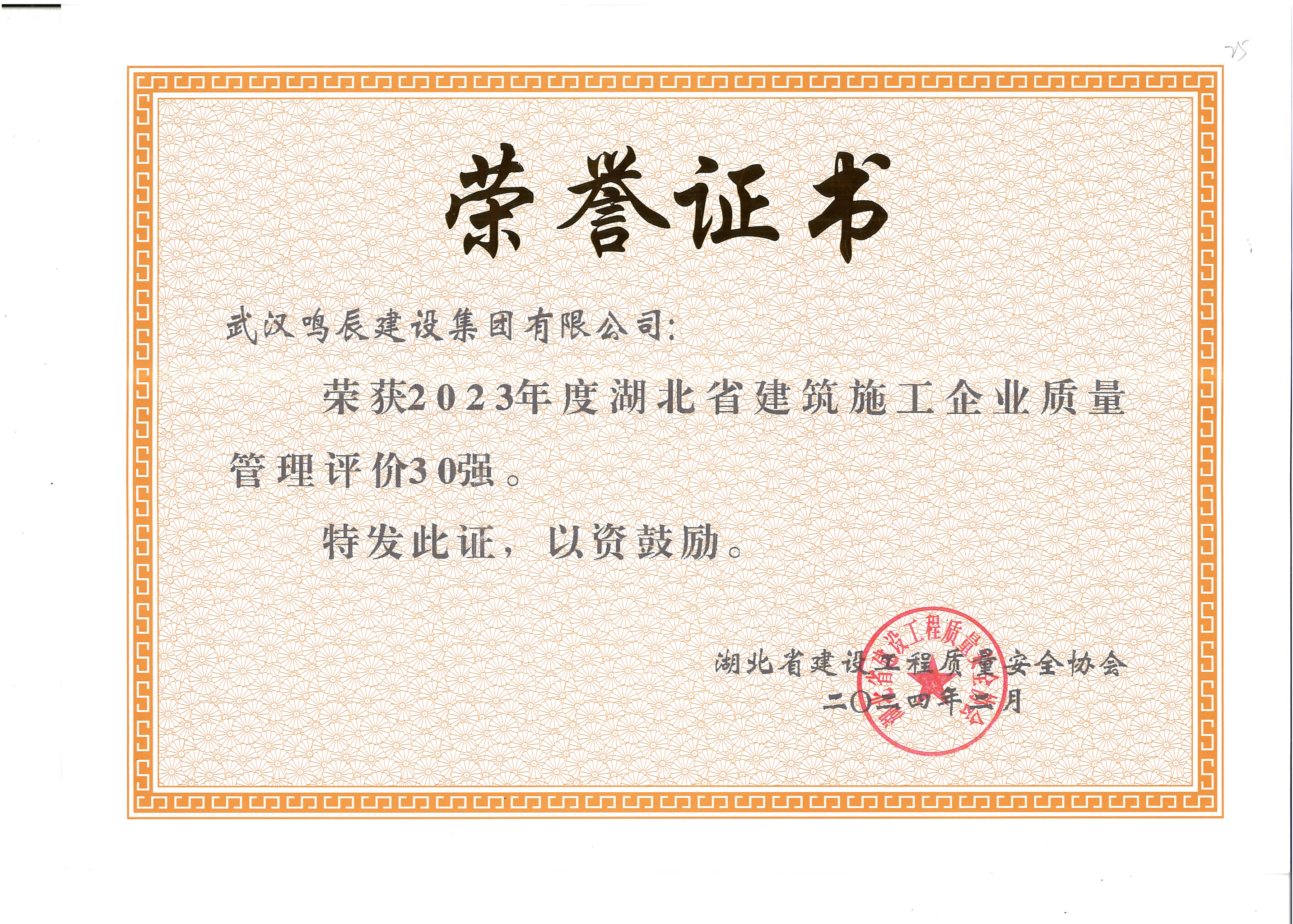 2023年度湖北省建筑施工企業(yè)質(zhì)量管理評價 30強