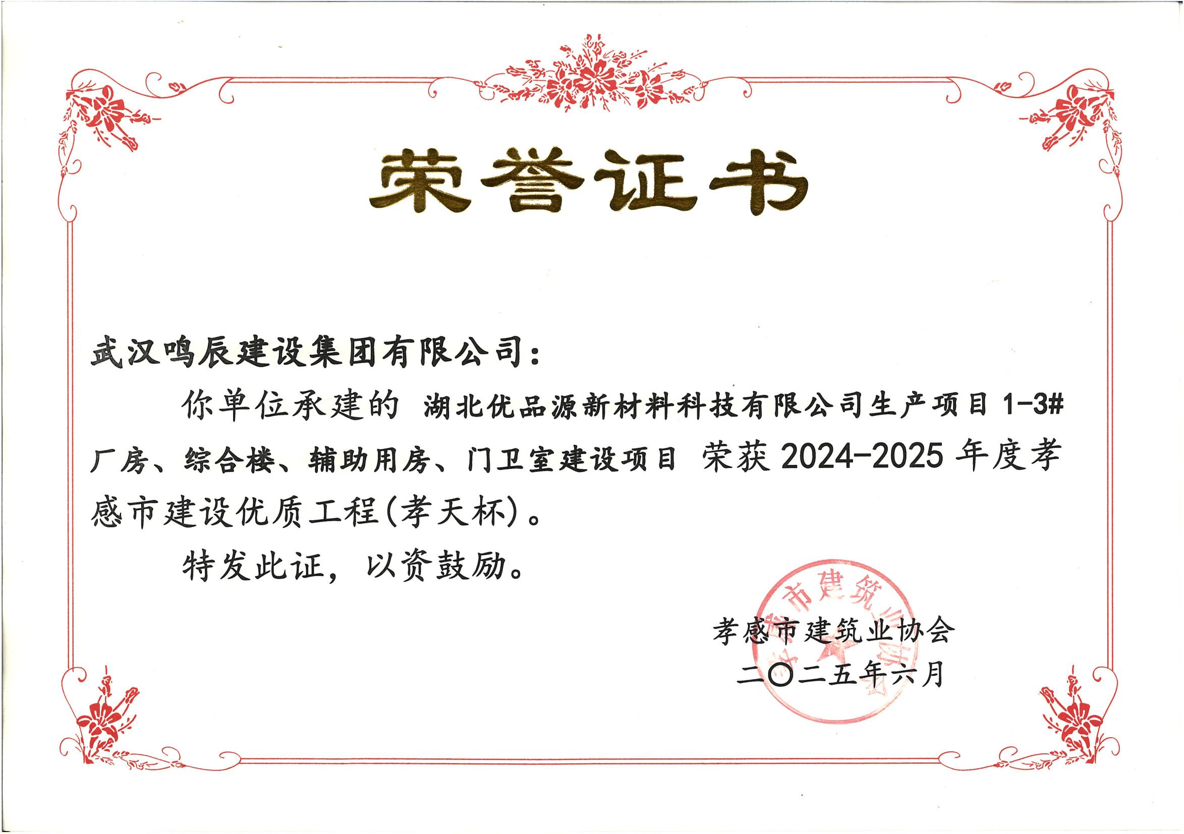 2024-2025年度孝感市建設(shè)優(yōu)質(zhì)工程(孝天杯)